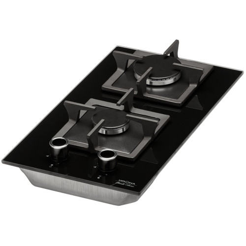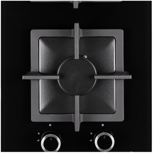Поверхность изготовлена из высококлассного закаленного стекла, устойчивого не только к интенсивному нагреву, но и перепадам температур. Великолепный внешний вид сочетается с простотой очистки, ударопрочностью и долгим сроком службы. Однако не рекомендуется использовать абразивные моющие средства и жесткие металлические губки, поскольку они могут оставить царапины и испортить облик плиты. Поскольку именно живой огонь считается наилучшим для отличного вкуса и аромата пищи, то газовая поверхность — это оптимальный выбор. Особенно если ваш дом подключен к центральному газоснабжению, ведь в этом случае и стоимость коммунальных услуг будет существенно ниже. Входящие в комплект жиклеры для сжиженного газа позволяют использовать баллоны. Каждая из двух горелок обладает своей мощностью и диаметром, и может быть использована для посуды разного диаметра. Задать интенсивность горения можно при помощи поворотных переключателей с отметками «минимум» и «максимум». В них встроена система автоматического электроподжига, поэтому не стоит волноваться о спичках, рисковать собственными руками, чтобы начать работу. Достаточно лишь надавить на ручку управления и повернуть ее против часовой стрелки. В том случае, если перелившаяся через край жидкость зальет пламя или порыв ветра из открытого окна погасит его, утечки не случится — ведь панель оборудована системой газ-контроль, которая перекрывает подачу газа в таких ситуациях.