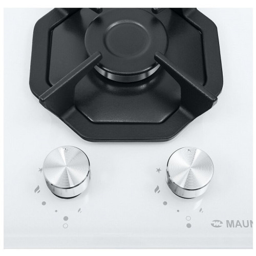 Газовая варочная поверхность MAUNFELD EGHG.32.2CW/G отличается футуристическим дизайном и рекордно малой шириной встраивания. Она станет настоящей находкой при оборудовании кухни очень скромного размера или холостяцкой квартиры-студии, в которой под рабочую поверхность отведено совсем немного места. Верхняя панель выполнена из закаленного стекла молочно-белого цвета, а восьмигранные миниатюрные решетки – из чугуна, который не деформируется даже после многолетней эксплуатации.