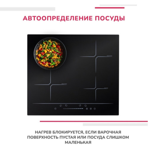 Индукционная варочная панель Simfer H60I74S002 надёжно прослужит долгие годы, обеспечит вкусной и горячей пищей, сохраняя возможность экономии электроэнергии и продлевая срок эксплуатации посуды для готовки. Панель со стеклокерамикой имеет 4 зоны нагрева, предназначенные для использования посуды диаметром 16 – 21 см, также можно использовать посуду другого диаметра. Индукционная панель распознает диаметр дна и наличие пищи для разогрева. В случае, если панель некоторое время находится без внимания хозяев и не получает команд, происходит защитное автоматическое отключение прибора. Это означает, что, забыв выключить плиту, можно быть спокойным – прибор автоматически отключится через несколько минут. Среди преимуществ панели есть защитные функции и некоторые опции для комфортной эксплуатации: • блокировка от случайного старта разогрева; • отклонение нагрева при наличии пустой посуды; • возможность плавного переключения степени нагрева; • таймер, значительно облегчающий работу над многокомпонентными блюдами. Обновлённая панель сенсорного управления, расположенная на фронтоне прибора, позволяет просто и быстро готовить пищу, при необходимости менять режимы обработки. В конструкции модели предусмотрены 2 охлаждающих вентилятора, способствующих правильной регулировке параметров работы панели. Стильное оформление и чёрный цвет поверхности позволяет совмещать присутствие панели с другой техникой в стиле хай тек, легко адаптировать к современному кухонному дизайну.