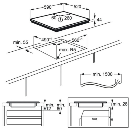 | Безопасность | защитное отключение конфорок, индикатор остаточного тепла, кнопка блокировки панели |