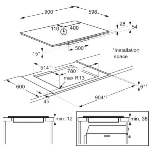 Безопасность защитное отключение конфорок, индикатор остаточного тепла, кнопка блокировки панели