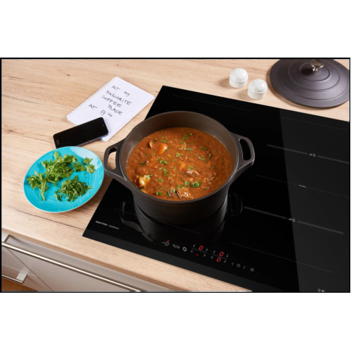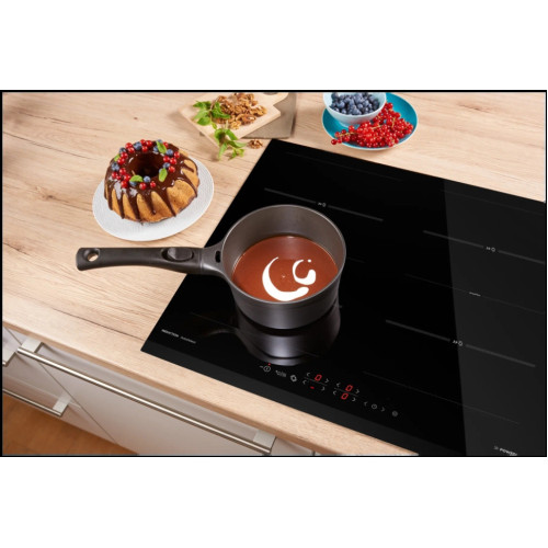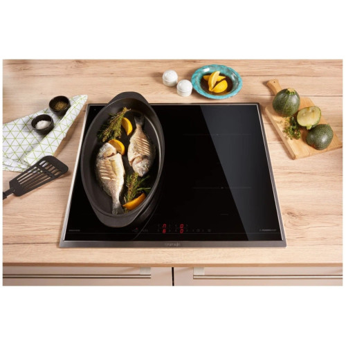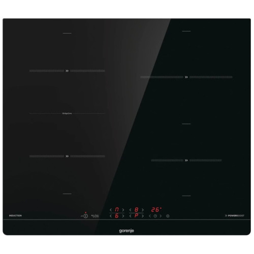Gorenje IT643BSC – независимая индукционная варочная панель. С ней приготовление пищи будет отнимать значительно меньше времени. Благодаря функции PowerBoost, например, чтобы довести до кипения два литра воды понадобится не более шести минут. На рабочей поверхности находятся четыре конфорки, две из них можно объединить в одну и получить большую рабочую зону для готовки в большой посуде нестандартной формы: утятнице или рыбоварке. Функция «Автоматика закипания» сэкономит ваше время, избавив от необходимости дежурить у плиты. Панель начнёт работу на максимальной мощности, а потом сама определит момент, когда уровень нагрева нужно будет понизить. Не все члены семьи успели к ужину? Благодаря режиму StayWarm прибор поддерживает температуру готового блюда. Все настройки отображает встроенный цифровой дисплей. Вы сможете установить таймер, когда заданное время закончится, устройство отключится автоматически. Специальные датчики определяют наличие посуды. Если вы случайно включите «пустую» конфорку, перегрева не произойдёт. Панель встраивается вровень со столешницей. Это не только стильно выглядит, но и заметно облегчает уборку: в месте стыка не будут скапливаться крошки и прочие загрязнения.