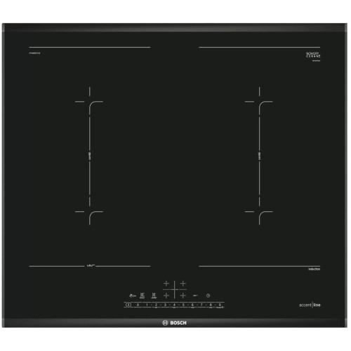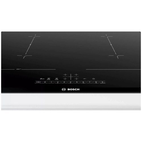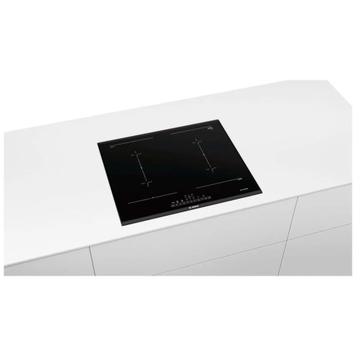 Индукционная варочная панель BOSCH PVQ695FC5E имеет 4 конфорки, мощность которых можно регулировать. Стильный бытовой прибор сделан из качественной стеклокерамики в черном цвете. Легко моется. Сохраняет свою привлекательность на протяжении многих лет. Индукционная варочная панель BOSCH PVQ695FC5E не включится при отсутствии посуды на плите, поскольку имеется специальная энергосберегающая опция. На каждую конфорку отведен отдельный сенсор для включения. Они расположены по переднему краю. Можно установить таймер для автоматического выключения конфорок. При переливе жидкости конфорка отключится автоматически. Опции безопасности – защита от детей, автоотключение, блокировка от случайного включения. Опции комфорта – овальная зона нагрева, объединение двух конфорок в одну, сенсор жарки, память и пауза, интенсивный нагрев на ограниченное время.