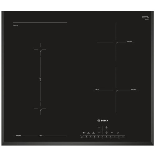 Индукционная варочная поверхность Материал рабочей поверхности стеклокерамика Цвет Черный Скошенные края 17 уровней мощности Электронный таймер 4 зоны нагрева с распознаванием размера кастрюли Таймер для каждой зоны приготовления Функции QuickStart и ReStart 2-ступенчатый индикатор остаточного тепла для каждой зоны нагрева Функция PowerBoost для всех зон приготовления Индикатор потребления энергии Защита от детей Потребляемая мощность: 6,9 кВт Габариты Ш /Г 59.2 см /52.2 см Вес 13 кг