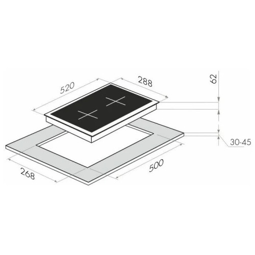 Тип панели: электрическая; Установка: независимая; Ширина, см: 28,8; Глубина, см: 52; Ширина для встраивания, см: 26,8; Глубина для встраивания, см: 50; Материал панели: стеклокерамика ; Всего конфорок: 2; Расположение панели: спереди; Автоматические функции: распознавание наличия посуды; Цвет панели конфорок: белый; Номинальная мощность, кВт: 3,5; Конфорок индукционных: 2; Переключатели: сенсорные; Таймер конфорок: да; Кнопка блокировки панели; Индикатор остаточного тепла; Защитное отключение