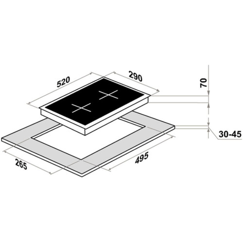 тип панели: индукционная, количество конфорок: 2, материал панели: стеклокерамика, установка: независимая, ширина: 29 см, глубина: 52 см, специальные конфорки: индукционная, конфорок индукционных: 2, безопасность: защитное отключение конфорок, индикатор остаточного тепла, кнопка блокировки панели, функции: Booster, кратковременная пауза, распознавание наличия посуды, таймер