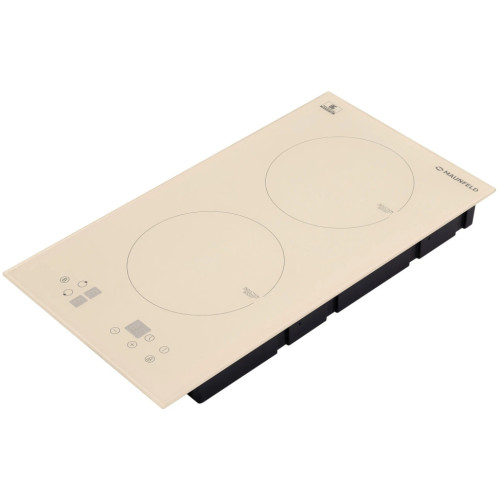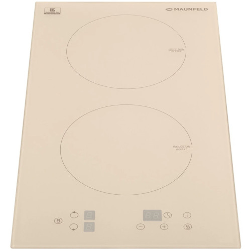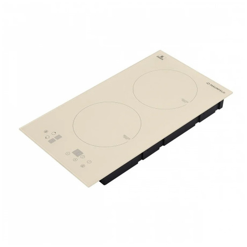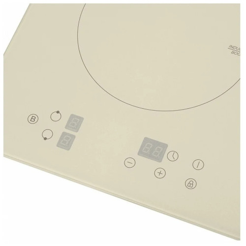 Индукционная варочная панель бежевого цвета шириной 30 см. Выполнена из жаропрочного износостойкого стекла Nippon Electric Glass производства Японии. Благодаря своим высоким техническим показателям значительно увеличивает срок службы плиты. Диаметр каждой из 2-х конфорок составляет 180 мм. Одна конфорка мощностью 1500 Вт (бустер 1800 Вт), вторая - 2000 Вт (бустер 2300 Вт). Сенсорное управление, расположенное на фронтальной поверхности, дает возможность: выбрать уровень мощности для каждой конфорки (9 уровней) заблокировать панель от детей выставить таймер (для отключения одной или нескольких варочных зон по истечении заданного времени) Предусмотрены следующие функции, упрощающие эксплуатацию плиты: Индикатор остаточного тепла, который укажет, какая из варочных зон ещё горячая. Детектор диаметра посуды, позволяющий экономить электроэнергию, нагревая только необходимую полезную поверхность конфорки. Автоматическое отключение в случае перегрева, долгого простоя работающей конфорки, попадания влаги на поверхность готовки и использования неподходящей посуды. Для приготовления на индукционной варочной панели пригодна посуда из ферромагнитного материала с ровными краями и плоским дном.