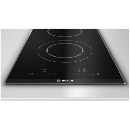 Электрическая варочная панель Bosch PKF375FP1E cо стеклокерамической поверхностью и независимым управлением оборудована 2 конфорками Hi-Light. Благодаря функции PowerBoost (усиленный нагрев) можно ускорить приготовление блюда или процесс кипячения воды. Управление осуществляется с помощью сенсорной панели, а блокировку элементов управления удобно использовать при мытье варочной панели. Металлический профиль, расположенный по бокам варочной панели, позволяет защитить края от случайных сколов.