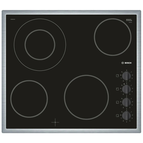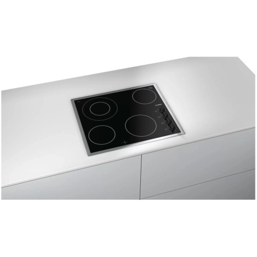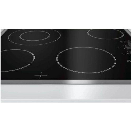 Встраиваемая варочная панель Bosch PKF645CA1E со стеклокерамической поверхностью и независимым управлением оборудована 4 конфорками Hi-Light. Механическое управление обеспечивает комфорт при работе. Специальный индикатор указывает остаточное тепло, которое можно использовать для доводки блюда или для его поддержания в теплом состоянии, а также позволяет оптимизировать потребление электроэнергии. Декоративная металлическая рамка защищает края варочной панели от сколов.