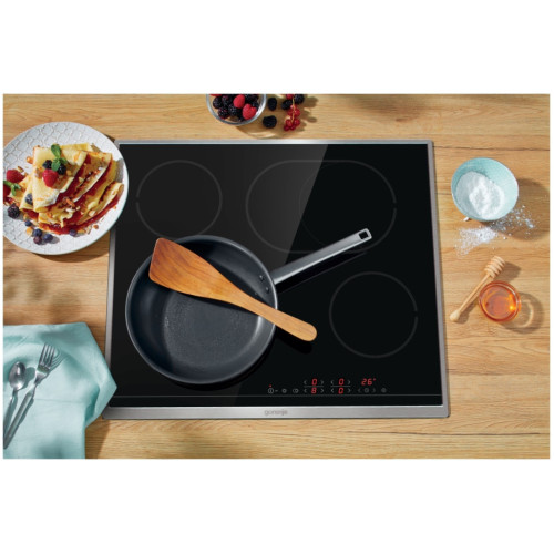 Встраиваемая электрическая панель Gorenje ECT643BX снабжена двумя конфорками с расширением зоны нагрева – круглой и овальной. Она позволяет готовить в крупногабаритной посуде – например больших кастрюлях, специальных формах для запекания и сковородах для гриля. Всего пары прикосновений к сенсорным кнопкам хватит, чтобы установить оптимальную температуру и выбрать время приготовления. Устройство может не только нагревать, но и поддерживать постоянную температуру. При нажатии кнопки Stop&Go все конфорки перейдут в этот режим, и вы сможете отвлечься от готовки. Панель самостоятельно уменьшит мощность при достижении максимальной температуры. Она предотвратит пригорание продуктов и расплёскивание жидкости. Сенсорные кнопки можно временно отключить, запретив детям включать варочную панель.