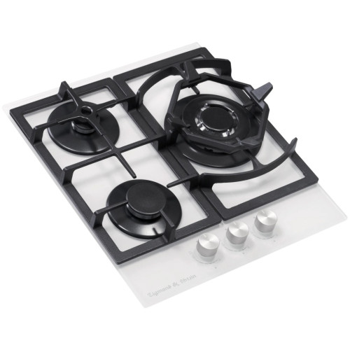 Общие данные: Габариты: 4.5х46х52 см Габариты ниши для встраивания: -х44.3х49.8 см Рабочий стол: закаленное стекло Количество конфорок: 3, в т.ч. WOK-конфорка Мощность конфорок: 1 горелка 3800 Вт 1 горелка 1750 Вт 1 горелка 900 Вт Электроподжиг в каждой ручке Газ-контроль Управление: Фронтальное управление Поворотные переключатели Дополнительная информация: Решетки: чугунные Матовые колпачки горелок Переходники для разных типов газа: для газа G30/30mbar в комплекте