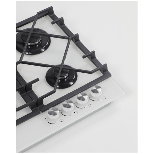 Ширина: 60 см Цвет: белый Мощность горелок:1 горелка – 900 Вт, 2 горелки – 1800 Вт, 1 горелка – 3400 Вт Фронтальное управление Поворотные переключатели Тройное кольцо пламени Электроподжиг в каждой ручке Чугунные решётки Матовые колпачки горелок Газ-контроль Переходники для разных типов газа в комплекте