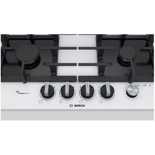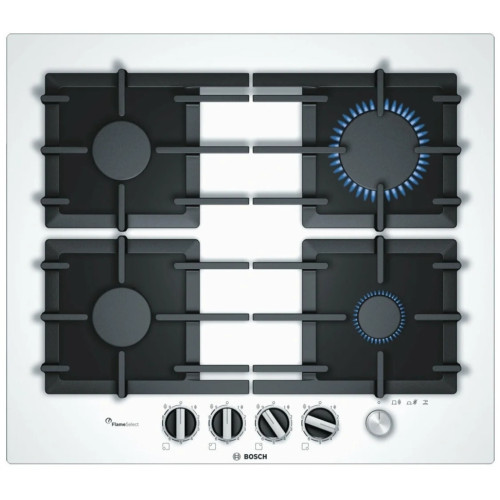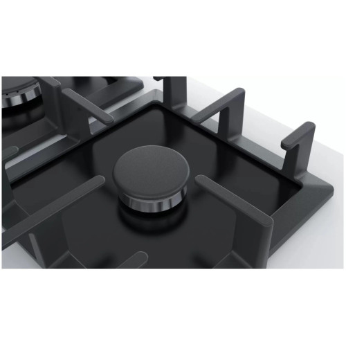 Bosch PPP6A M90R - встраиваемая газовая поверхность для приготовления и разогрева пищи. Это безопасная и простая в использовании техника для современной кухни. Благодаря стеклокерамической поверхности эта модель выглядит особенно элегантно. К тому же за стеклокерамикой легко ухаживать, с неё без лишних хлопот удаляются загрязнения. Панель оснащена четырьмя конфорками, поэтому на ней можно готовить и разогревать сразу несколько блюд. Пользователю предлагаются две стандартные конфорки, экономичная конфорка и конфорка повышенной мощности. Функция FlameSelect обеспечивает точную регулировку пламени на 9 ступенях, что существенно упрощает выбор температуры, необходимой для приготовления того или иного блюда. Разработчики предусмотрели надёжную составную решётку. Она изготовлена из прочного чугуна, способна выдержать вес тяжёлой посуды, а при необходимости её легко можно снять и помыть. Автоматический электроподжиг и удобные поворотные переключатели делают управление всеми функциями панели особенно простым.