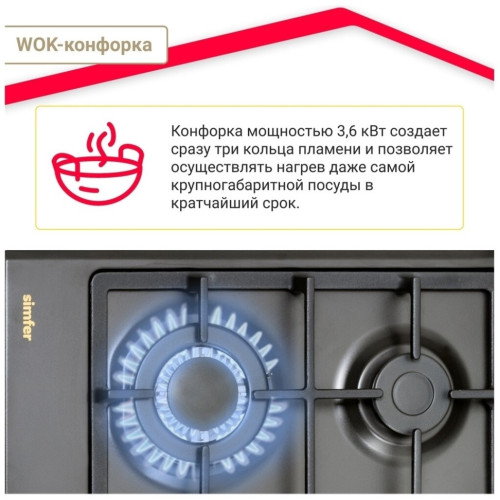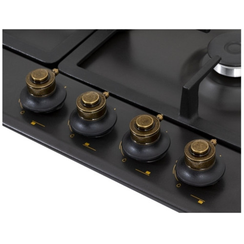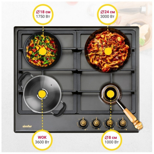 Газовая поверхность независимая Рабочая поверхность Эмалированная сталь Переключатели поворотные Количество конфорок: 4 Габариты (ВхШхГ) 5.5х60х52 Конфорка повышеннои? мощности 3000 Вт Автоматическии? электроподжиг, газ-контроль