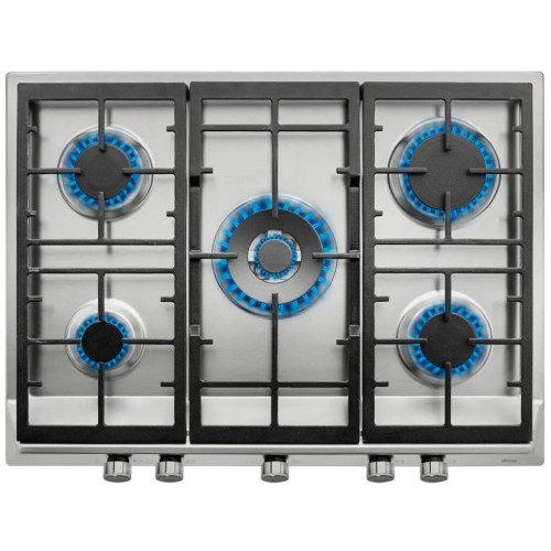 Цвет: Нержавейка; Конфорки: Газовые; Тип подключения: независимый; Количество конфорок: 5; Материал рабочего стола: Металл; Ширина: 68 см; Глубина: 50 см; Высота: 5.2 см; Электроподжиг: Есть; Газ-контроль конфорок: Есть; Материал решеток: Чугун; Таймер: Нет; Интегрированная вытяжка: Нет; Комбинированный рабочий стол: Нет; Управление: Переключатели; Ширина шкафа для встраивания: 60 см; Цвет фурнитуры: В цвет корпуса; Конфорка WOK: Есть; Встраивание в столешницу: Накладная; Тип рамки: Без рамки