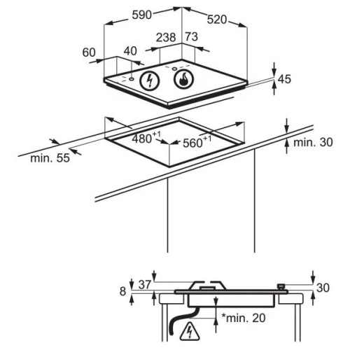Ширина для встраивания (см) 56