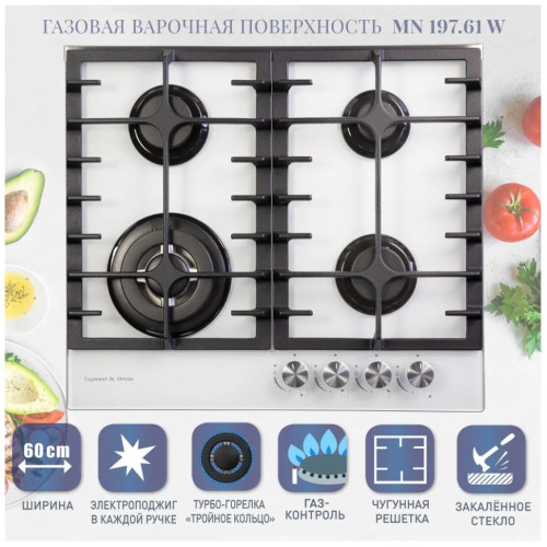 Газовая варочная панель из закаленного стекла Zigmund & Shtain MN 197.61 W. Материал поверхности - закаленное стекло повышенной прочности. Отличается эстетически привлекательным внешним видом и легкостью в уходе.