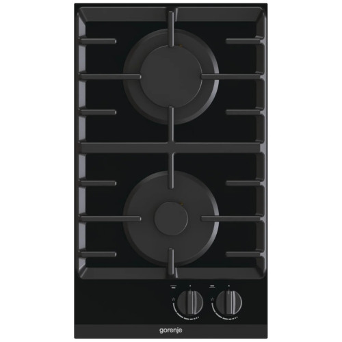 Газовая варочная панель Gorenje GC321B Особенности: Конфорки: 2 газовые Автоматический электроподжиг варочной поверхности Чугунные решетки Форсунки в комплекте Конфорки: Передняя конфорка Малая ? Передняя (мм) 53,7 Мощность передней конфорки 1050 Вт Задняя конфорка большая Мощность задней конфорки 3000 Вт Характеристики: Общая мощность подключения к газу 4050 Вт Габариты (ВхШхГ): 132х300х520 мм Габариты ниши для встраивания (ВхШхГ): 100х260х490 мм Напряжение 220-240 B Цвет: Чёрный