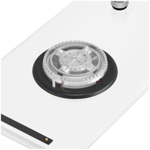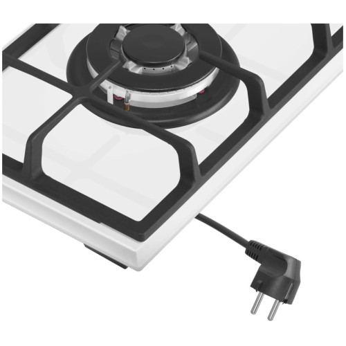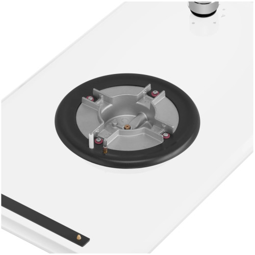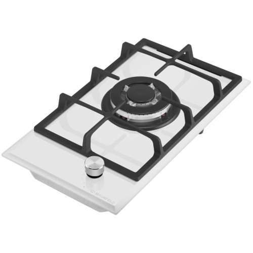 Компактная встраиваемая газовая варочная панель шириной 30 см поместится даже на небольшой кухне. Она не только встраивается в столешницу, но и может использоваться как отдельностоящая плита, благодаря 4 ножкам-опорам, которые идут в комплекте. Работает от магистрального газа и газа в баллоне (тип G30). Для этого достаточно поставить специальные жиклеры французской фирмы Sourdillion. Панель выполнена из термостойкого белого стекла толщиной 8 мм и с фацетом по всему периметру. В данной модели установлена одна супермощная WOK-конфорка (3800 Вт) итальянского производства (Sabaf). Регулирование подачи газа и электроподжиг конфорок происходит с помощью поворотных цельнометаллических регуляторов. Для простоты использования около каждой ручки нанесены информационные изображения: используемая конфорка, подача газа выключена, электроподжиг, максимальное пламя и минимальное пламя. Система газ-контроля надежно защищает бытовой прибор от утечек газа при неожиданном затухании конфорки.