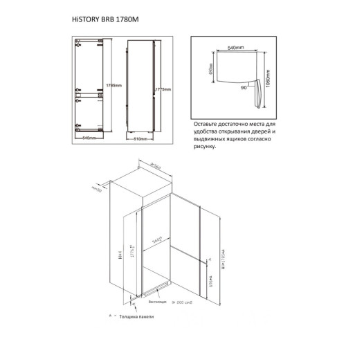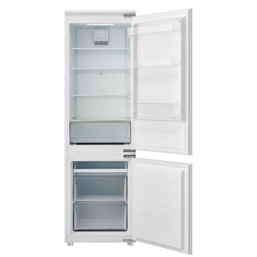Встраиваемый двухкамерный холодильник HiSTORY BRB 1780M объемом 260 л разработан для установки в нише кухонной мебели. В холодильнике реализована технология Total No Frost, не требующая размораживания. Мощность замораживания холодильника составляет 3,5 кг/24 часа. Для быстрого замораживания в морозильной камере свежих продуктов массой более 4 кг предусмотрена функция Суперзаморозки. Технология двухконтурной системы распределения воздуха Dual Fresh Cooling System позволяет поддерживать постоянную температуру и влажность отдельно внутри холодильной и морозильной камер. Регулировка температуры и других параметров работы производится при помощи электронной сенсорной системы управления Сool Select Temp Zone на правой панели холодильника. Полки в просторной холодильной камере объемом 189 л выполнены из закаленного стекла. Они способны выдерживать вес до 15 кг. Яркая светодиодная подсветка освещает все пространство холодильного отделения. Влажная зона свежести объемом 27 л рассчитана для хранения овощей, фруктов и ягод. Морозильная камера объемом 77 л относится к классу **** (4 звезды). В ней размещены полка для пиццы и мороженого и два выдвижных контейнера. В комплектации присутствует контейнер для льда. Звуковая индикация открытой двери Door Alarm известит, если дверь холодильника осталась открытой. Декоративный фасад крепится скользящим способом по системе door slider, что позволяет не лимитировать вес фасада. Дверца будет открываться на угол до 90°. Для выравнивания прибора на месте установки служат 2 регулируемые ножки. Класс энергоэффективности А+. Максимальный уровень шума 41 дБ. Холодильник с возможностью перевешивать дверцы. Необходимые заглушки включены в комплектацию.