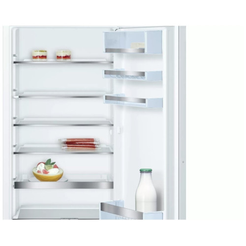 Тип холодильник Тип утсановки встраиваемый Цвет белый Общий полезный объем 211 л Тип зоны свежести VitaFresh plus Климатический класс SN-T Класс энергопотребления A+ Тип компрессора стандартный Годовой расход эл.энергии 105 кВт/год Мощность подключения 90 Вт Напряжение 220-240 В Частота 50-60 Гц Уровень шума 33 дБ Дверной упор справа Возможность перенавешивания двери есть Индикация открытой двери есть Внутреннее освещение светодиодное Материал полок стекло Функция суперохлаждения есть Система размораживания No Frost Элементы управления кнопки Тип управления электронное Дисплей есть Общее количество полок в холодильной камере 6 полок Количество регулируемых полок в холодильной камере 5 полок Количество фиксированных полок в холодильной камере 1 полка Количество полок на дверце 4 полки Количество подставок для яиц 2 подставки Количество ящиков 1 ящик Габариты (ВхШхГ) 122.1х55.8х54.5 см Габариты ниши (ВхШхГ) 122.5х56х55 см Вес 47 кг Срок гарантии 1 год