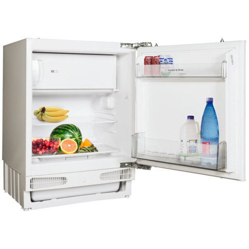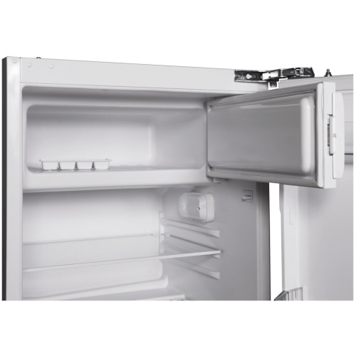 Встраиваемый однодверный холодильникКлиматический класс: SN1 компрессорОбъемОбщий объём брутто: 120 лОбщий объём нетто: 115 лОбъём холодильной камеры брутто: 102 лОбъём холодильной камеры нетто: 98 лОбъём морозильной камеры брутто: 18 лОбъём морозильной камеры нетто: 17 лОсобенностиКласс энергопотребления: А+Потребление энергии: 0,468 кВт в сутки, 171 кВт/годМощность замораживания: 2 кг/суткиМощность: 123 ВтОхладитель: R600a (40 гр)Уровень шума: 39 дБАвтономия: 600 минМеханическое управлениеЦветовая индикация закрытой дверцы морозильной камерыИндикация открытой дверцы морозильной камерыОсвещение холодильной камеры1 полка для бутылок1 полка в дверце холодильной камерыРазмораживание холодильной камеры: автоматическоеРазмораживание морозильной камеры: ручноеПеревешиваемая дверцаЛоток для льдаТип навески фасада: скользящийГабаритыГабариты (ШхГхВ): 595X548X818 мм