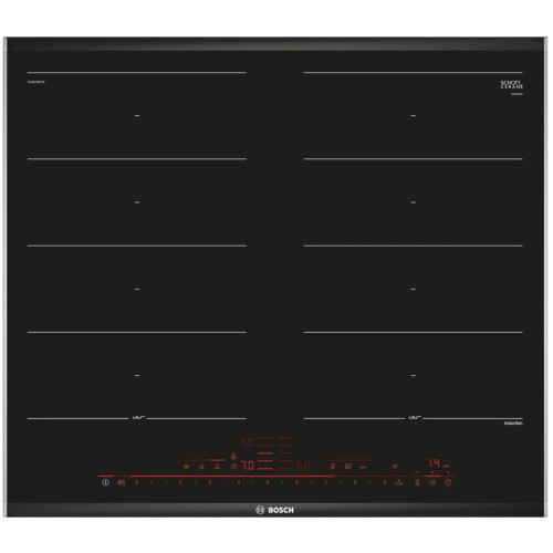 Индукционная варочная панель Bosch PXX675DV1E с сенсором жарения PerfectFry позволяет добиться идеального поджаривания благодаря 5 температурным режимам. Интуитивное понятное управление DirectSelect Premium позволяет быстро подобрать зону нагрева, мощность и дополнительные функции. Индукция: быстрое и тщательное приготовления с небольшими затратами электроэнергии и легкостью очистки прибора. Зона нагрева FlexInduction объединяет четыре овальные индуктора, которые могу быть сгруппированы в две независимые конфорки или одну большую зону нагрева. Во время работы автоматически активируются только перекрытые посудой индукторы, что минимизирует расход электроэнергии. Зона FlexInduction позволяет размещать посуду диаметром от 8 до 30 см и вытянутую посуду длиной до 40 см. FlexInduction позволяет гибко подстраивать работу зоны нагрева под потребности пользователя. Большая жаровня или несколько небольших кастрюль - любая комбинация может быть реализована на FlexInduction зоне с максимальной скоростью нагрева и минимальным потреблением электроэнергии.
