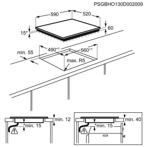 Безопасность защитное отключение конфорок, индикатор остаточного тепла, кнопка блокировки панели