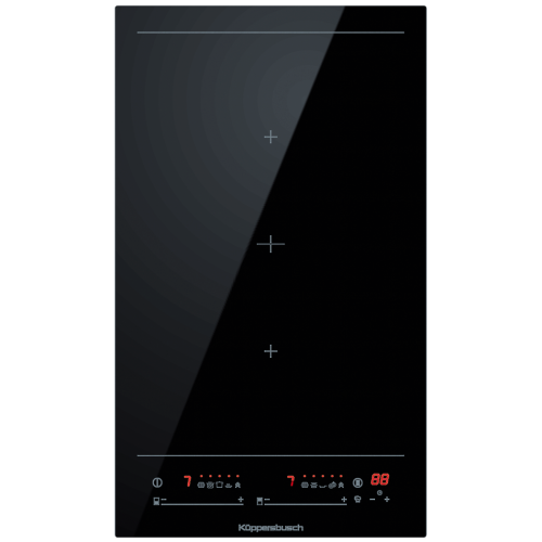 Индукционная варочная панель Kuppersbusch VKI 3850.0 SR Оснащение: - 10-ступенчатая регулировка мощности glideControl+ (включая boost) с красными индикаторами - 7 специальных ступеней: ступень поддержания тепла, ступень приготовления пасты, ступень варки в кипятке, ступень выпаривания, ступень глубокой прожарки, ступень для жарки, ступень для гриля - Функция объединения ближней и дальней варочных зон в одну - Управление мощностью - Индикация остаточного тепла - Таймер с функцией отключения - Централизованное отключение - Принудительное отключение (ограничение продолжительности работы) - 2 варочные зоны 255 х 200 мм / 1700 Вт (2000 Вт*) * при включении режима Power