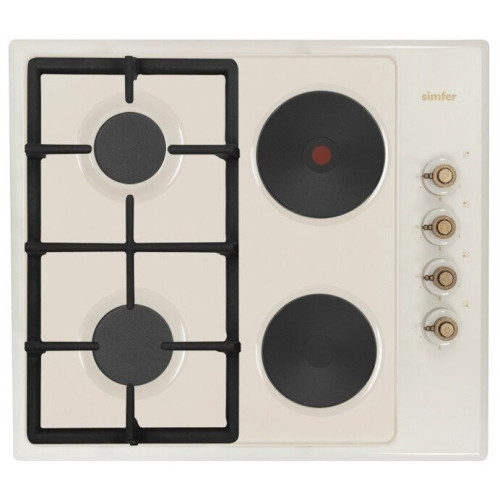 Артикул: 579-606 Встраиваемая комбинированная варочная панель Simfer H60Q22O511 Комбинированная поверхность Simfer H60Q22O511 с независимым типом установки, оснащена поворотными переключателями. Модель выполнена из металла, покрытого жаростойкой эмалью бежевого цвета. Панель оснащена системой «газ-контроль» для газовых конфорок — это система сработает в случае, если пламя случайно погаснет. Так же в ручки управления интегрирован электроподжиг — теперь можно забыть о спичках, достаточно повернуть ручку и пламя зажжется от искры.