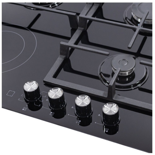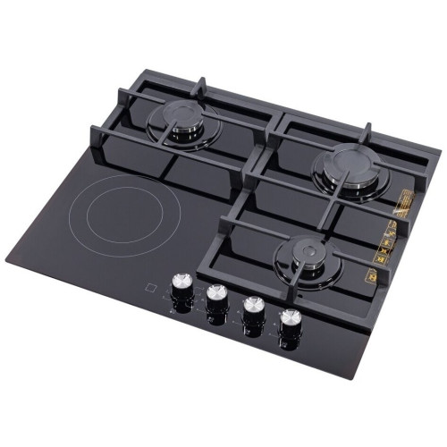 Тип панели: комбинированная варочная поверхность; Установка: независимая; Размеры (ШхГ): 59х52 см; Размеры для встраивания (ШхГ): 56 x 49 см; Специальные конфорки: керамическая, Hi Light; Материал панели: закаленное стекло; Количество конфорок: 4; Газовых конфорок: 3;