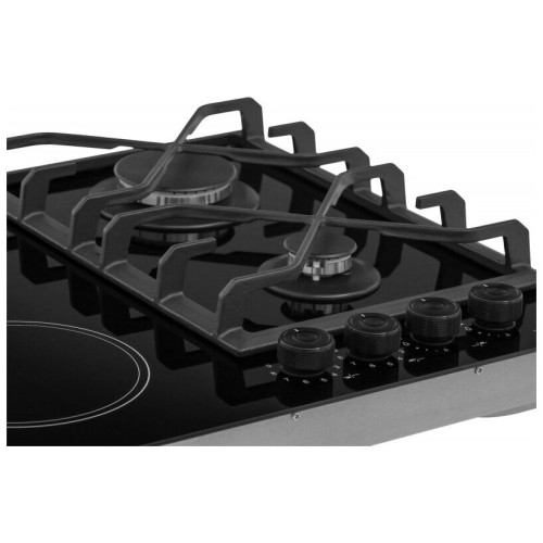 Комбинированная варочная панель HIBERG HM 6021 B соединяет в себе эстетику и функциональность, а так же премиум качество и удобство использования. Рабочая поверхность выполнена из стеклокерамики черного цвета и оснащена 4 конфорками. Уникальность данной модели в том, что она соединяет в себе два типа варочной поверхности: газовый и электрический. Рабочая поверхность с двумя электрическими конфорками имеет мощность 3000 Вт, диаметр и мощность конфорок разный, поэтому есть возможность использовать разную по форме и объему посуду. Кроме того, электрическая поверхность остывает постепенно, что позволяет поддерживать температуру только приготовленного блюда. Поверх газовых конфорок установлена чугунная решетка, она отличается особой прочностью и стабильностью, а так же удобна в очистке. Основное преимущество для газовых конфорок - функция «электроподжиг», с которой вы забудете про спички или зажигалку, достаточно просто нажать и повернуть регулятор – конфорка включится автоматически. За безопасность подачи газа отвечает система «Газ-контроль», которая обезопасит пользователя от вероятности воспламенения при утечке газа. Мощность любой горелки, можно регулировать с помощью металлических поворотных переключателей, которые находятся на фронтальной панели управления. Цвет переключателей под темный металл. Особенности и преимущества: - газоэлектрический тип варочной поверхности; - электроподжиг; - газ-контроль; - чугунная решетка; - легкость в уходе. Выбирая технику HIBERG, вы можете быть уверены в премиум качестве и долговечности продукта!