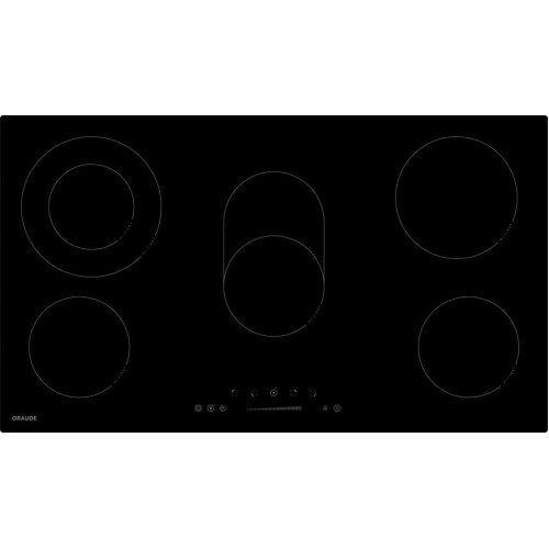 Электрическая варочная поверхность Graude черного цвета обладает впечатляющими размерами, что делает ее удобной для большой семьи. На панели из стеклокерамики расположены 5 конфорок, одна из которых двухконтурная, а вторая с овальной зоной расширения. Поэтому для приготовления еды можно пользоваться посудой разного объема. Удобные сенсорные кнопки позволяют легко выбирать режим нагрева конфорок и другие функции. Чтобы исключить случайное нажатие сенсоров, предусмотрена кнопка их блокировки. Электрическая варочная поверхность Graude оснащена механизмом защитного отключения конфорок, что сделает ее эксплуатацию безопасной. Также у каждой конфорки предусмотрено наличие индикатора остаточного тепла, благодаря которому можно отключить еще нагретую конфорку за несколько минут до окончания приготовления еды. Это позволит сэкономить электроэнергию. Таймер конфорок дает возможность устанавливать нужное для приготовления блюда время, по окончанию которого конфорка отключается.