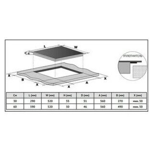 Общие характеристики: стеклокерамическая поверхность; 4 конфорки; независимая установка; защита от детей; сенсорные переключатели; кнопочное управление; индикатор остаточного тепла; ШхГ: 59х52 см;