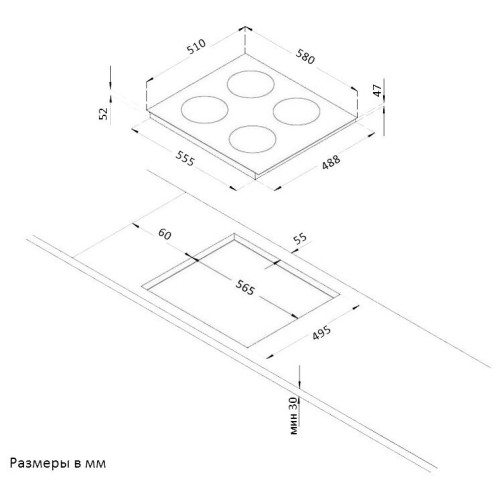 | Ширина для встраивания (см) | 55,5 |