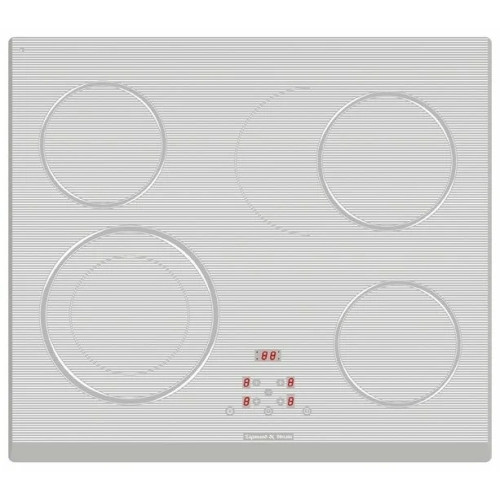 Керамическая поверхность Zigmund & Shtain CNS 159.60 WX выполнена в белом цвете и имеет ширину 58 см, что позволяет утверждать – она подойдет для кухни любого дизайна и обстановки. Со всех сторон стеклянная поверхность имеет 12-миллиметровую фаску, защищающую вас от порезов. Сенсорное управление вынесено на фронтальную часть поверхности. Здесь размещается и цифровая индикация работы четырех нагревательных элементов Hi Light, работающих с мощностью: 1200, 1200, 1000/2200, 1500/2400 Вт. Две зоны имеют расширение, одно из которых предназначено для посуды типа гусятниц. Модель способна работать в 9 режимах нагрева, оборудована таймером для каждой зоны и отдельным таймеров для варки яиц. Если вы прекратили работу, но тут же решили снова поставить кастрюлю на огонь, индикатор остаточного тепла покажет, какая из конфорок еще не остыла. Zigmund & Shtain CNS 159.60 WX автоматически защищает себя от перелива и перегрева, а вас и вашу семью от нечаянного старта и включения поверхности детьми.