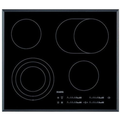 Встраиваемая электрическая панель AEG HK65407RFB оснащается сенсорными слайдерами, управляющими мощностью каждой конфорки. Благодаря этому пользователь может выбрать требуемую интенсивность нагрева за считанные секунды. ДЛЯ БОЛЬШОЙ ПОСУДЫ Одна из конфорок плиты имеет три нагревательных элемента с диаметром от 13 до 22 сантиметров. Она позволяет выбирать требуемые параметры в зависимости от размера установленной на её поверхность посуды. Ещё одна конфорка имеет овальную форму - она идеально подходит для приготовления различных блюд в утятнице. ЧИСТОТА И НАДЁЖНОСТЬ Стеклокерамическая поверхность устройства выдерживает очень большие нагрузки - в том числе и возникающие при падении крупных предметов. Кроме того, она легко очищается от жира и других кухонных загрязнителей - её можно отмыть в течение минимального времени. ОТЛИЧНАЯ ФУНКЦИОНАЛЬНОСТЬ Варочная поверхность оснащена автоматикой закипания и таймером отключения конфорок. Благодаря этому пользователь может отвлекаться от процесса готовки, не опасаясь пригорания продуктов и испарения воды. МАКСИМАЛЬНАЯ БЕЗОПАСНОСТЬ Функция блокировки панели управления обеспечивает удобство очистки устройства и не позволяет включать его детям.