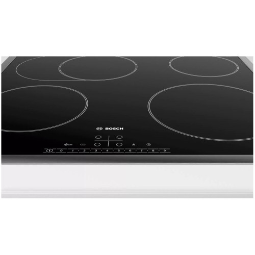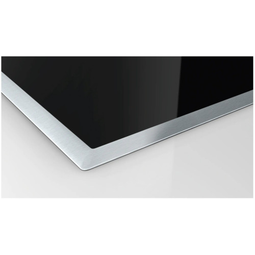 Стеклокерамическая варочная панель: удобна как в приготовлении пищи, так и в очистке. Управление DirectSelect позволяет сохранять полный контроль за процессами приготовления на варочной поверхности. На панели управления в одну линейку расположились все 17 ступеней мощности работы конфорки. Выбор необходимого уровня мощности осуществляется одним касанием. Так же прост и выбор дополнительных функций. Индикация панели управления отпечатана на стекле. С помощью функции reStart варочная поверхность сохраняет все настройки в случае непреднамеренного выключения. Для этого, если случайно отключили прибор главным выключателем, необходимо в течение 4 секунд снова включить варочную панель главным выключателем и тогда все предыдущие настройки восстановятся. Чтобы дети не смогли случайно включить прибор или изменить установки, он оборудован специальной функцией «Блокировка от детей». Активация функции блокировки панели управления очень проста - достаточно перевести переключатель выбора функций в нулевое положение. И удерживать нажатой кнопку с изображением ключа 4 секунды. Все просто и ребенок защищен. Таймер с функцией выключения позволяет сделать работу с варочной панелью более удобной. Задайте время приготовления, по истечении которого таймер автоматически отключит выбранную конфорку. Более широкая зона для использования более широкой посуды, например, жаровни. Благодаря зоне расширения у ваших кулинарных фантазий больше нет ограничений. Рамка из нержавеющей стали по периметру варочной панели - один из самых практичных вариантов дизайна и встраивания. Например, рамка удержит на варочной поверхности большое количество жидкости, не давая вытечь на столешницу, уменьшая площадь уборки в экстренной ситуации.