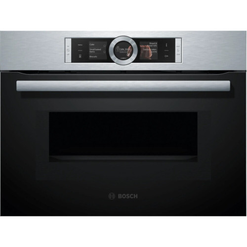 Компактный электрический духовой шкаф Bosch изготовлен из нержавеющей стали придает ему современный и стильный вид, который идеально впишется в любой интерьер кухни. Управление осуществляется с помощью сенсорных переключателей Control Ring, что делает использование духового шкафа удобным и простым. 2.5″ цветной TFT дисплей с сенсорными кнопками обеспечивает четкую и яркую визуализацию, а также предоставляет доступ к многофункциональным часам Easy Clock и таймеру. С широким диапазоном температур от 30 до 300 градусов и 12 режимами нагрева, этот духовой шкаф может с легкостью справиться с любыми кулинарными задачами. От быстрого подогрева посуды до бережного тушения, от приготовления пиццы до использования большого или малого гриля - все это возможно благодаря универсальности и гибкости этого прибора. Дополнительно, духовой шкаф оснащен функцией микроволн, что делает его еще более универсальным и практичным. Система распределения микроволн без поворотного стола обеспечивает равномерное нагревание пищи, а 5 уровней мощности микроволн позволяют настроить прибор под любые потребности. Функция EcoClean обеспечивает легкую и эффективную очистку, а амортизатор дверцы SoftMove обеспечивает плавное и бесшумное закрытие дверцы. Для безопасности, духовой шкаф оснащен блокировкой от детей и системой охлаждения прибора. В комплект поставки входят универсальная решетка и противень, что делает этот духовой шкаф еще более удобным и функциональным в использовании. Ключевые преимущества: * Высококачественная нержавеющая сталь * 12 режимов нагрева и функция микроволн * Эффективная система очистки EcoClean