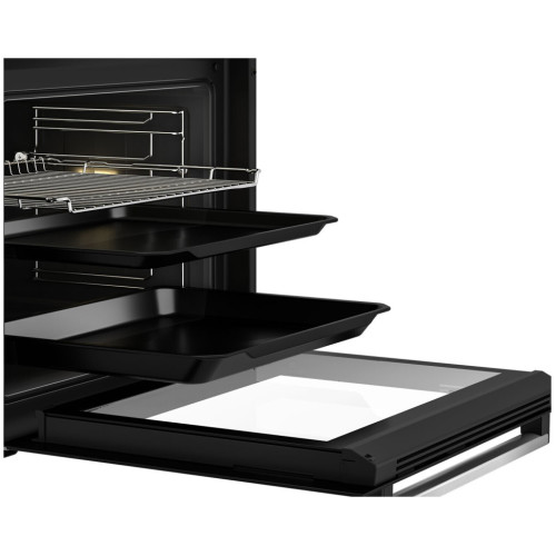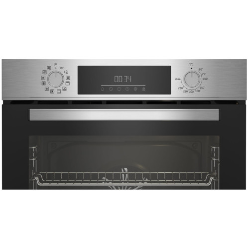 Мультифункциональный духовой шкаф объемом 72 л с LED дисплеем, поворотными переключателями и лаконичной панелью управления, выполненной из нержавеющей стали. Духовка имеет специальный режим