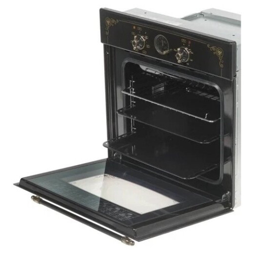 Электрический духовой шкаф. Классический дизайн современного образца, управление осуществляется двумя поворотными ручками: выбор режима работы и температуры нагрева. Есть часы и звуковой сигнал окончания работы программы. Помимо классического нагрева с автоматическим поддержанием заданной температуры, в комплектации присутствует электрогриль. Есть конвекция, равномерно распределяющая жар внутри шкафа. Запросто приготовить курицу-гриль, подрумянить выпечку, целиком запечь кусок мяса - духовой шкаф позволяет создавать кулинарные шедевры легко и просто. Продуман и контроль за готовностью блюда, внутреннее освещение - двухточечное, через двойное стекло прекрасно все видно и без открытия дверцы. Уход за прибором не доставляет проблем, для удобного доступа направляющие для противней и дверца - выполнены съемными. Размеры монтажного проема - 56x55x58 см (ШхГхВ), сетевой шнур и вилка в наличии. Ключевые преимущества: - Таймер; - Усиленный гриль с конвекцией; - Подсветка духовки двойная; - Съемные проволочные направляющие духовки.