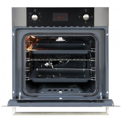 Общие характеристикиДуховка газовая независимая Объём 56 л Размеры (ВхШхГ) 59.4 х 59.4 x 54.3 см Максимальная температура 250 °С РежимыРежимов нагрева 3 Гриль есть Конвекция нет УправлениеПереключатели поворотные Таймер есть, звуковой Электроподжиг есть ДополнительноГаз-контроль есть Вертел есть Дверца духовки откидная Число стекол дверцы три Очистка духовки гидролизная Другие функции и особенности подсветка камеры, вентилятор охлаждения Цвет корпуса серебристый