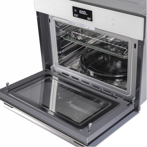 Описание 9 режимов, 13 автопрограмм, 3d конвекция, микроволны, полностью сенсорное управление, LED дисплей белого цвета, мультифункциональный таймер, съемная дверца с тройным стеклом, объем рабочей камеры 44 л, в комплекте круглый керамический поддон, круглый эмалированный поддон, стеклянный универсальный поддон, вращающийся поддон, решетка 2 шт, цвет белый