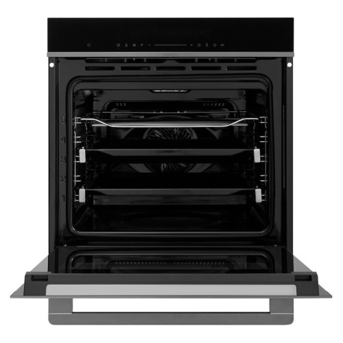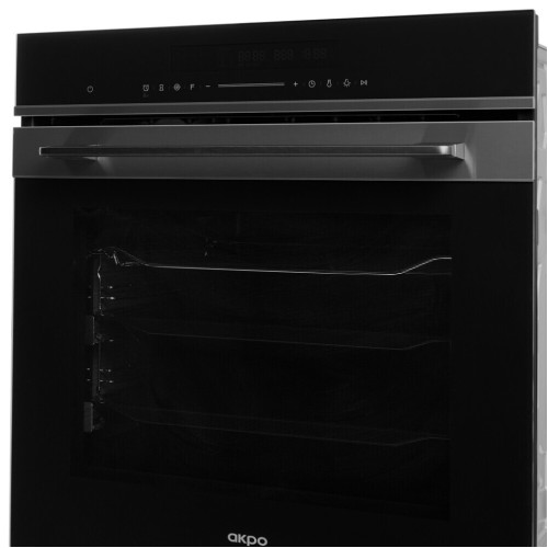 Встраиваемый электрический духовой шкаф с камерой 72 литра, на двух парах полновыдвижных телескопических направляющих, 13 режимами приготовления, полностью сенсорным управлением, каталитической очисткой и 3D конвекцией, выпускаемый под польским брендом AKPO (АКПО). 13 режимов, 3d конвекция, полностью сенсорное управление, цифровой LED дисплей белого цвета, мультифункциональный таймер, каталитическая очистка, быстрый разогрев, 5 уровней хромированных направляющих для противней, 2 пары полновыдвижных телескопических направляющих, съемная дверца с тройным стеклом и доводчиком, ручка дверцы алюминиевая черная, большой объем рабочей камеры - 72 л, в комплекте 1 решетка и 2 противня. Внутри духовой камеры находится специальная панель, покрытая каталитической эмалью. Жир, образующийся во время готовки, попадает на поверхность панели и расщепляется частицами катализатора, входящего в состав эмали. Продукты распада не оседают на стенках, а поглощаются специальными наночастицами. Очистка считается низкотемпературным методом и проводится непосредственно в процессе приготовления пищи при температуре от +140 °C до +200 °C.