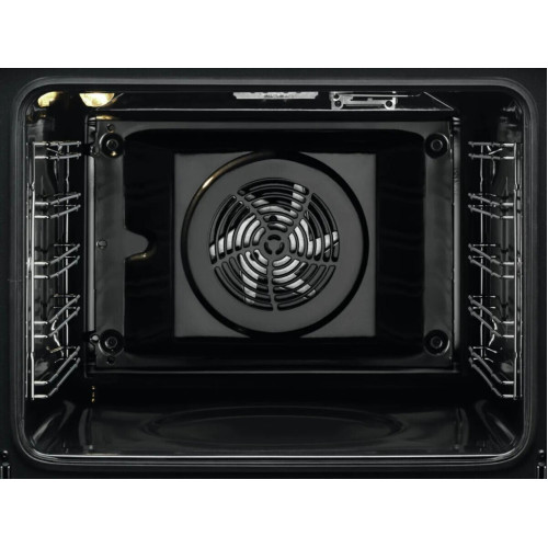 Встраиваемый электрический духовой шкаф AEG снабжен дисплеем и поворотными регуляторами для удобного управления. На дисплее отображаются: температура, выбранная программа, текущее время и настройки таймера. Мультифункциональный духовой шкаф позволяет настроить температуру нагрева в широком диапазоне с шагом всего 1°С. Жаропрочная дверца открывается вниз посредством ручки и оборудована двухслойным стеклом. Для внутреннего освещения установлена галогеновая лампа.