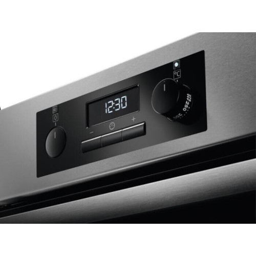 Духовой шкаф AEG — это сочетание элегантного дизайна и передовых технологий. Изготовленный в Италии, этот полноразмерный электрический прибор обеспечивает высокую производительность и надежность. Он выполнен в стильном цвете нержавеющей стали, что придает ему современный и стильный вид. К тому же, поверхность обработана специальным составом, предотвращающим оставление отпечатков пальцев, что облегчает уход. Управление осуществляется с помощью кнопок и поворотных утапливаемых переключателей, а также электронного дисплея LED. На дисплее можно увидеть все необходимые параметры приготовления, включая температуру и время. Также в устройстве предусмотрен звуковой таймер с функцией отключения и прямого отсчета, а также с возможностью установки продолжительности приготовления. В духовке предусмотрено 8 режимов приготовления, включая горячий воздух (конвекция), влажный горячий воздух, приготовление пиццы, традиционный нагрев, нижний нагрев, гриль, быстрое грилирование и турбогриль. Это позволяет готовить разнообразные блюда, отвечая всем кулинарным предпочтениям. Кроме того, в шкафу предусмотрено 5 уровней приготовления, что позволяет готовить несколько блюд одновременно без смешивания запахов. Освещение духовки осуществляется с помощью галогенной лампы, расположенной сверху. Это обеспечивает яркое и равномерное освещение, позволяя контролировать процесс приготовления. Для удобства уборки техника оборудована эмалью легкой очистки. Духовой шкаф AEG оборудован вентилятором охлаждения и телескопическими направляющими, что обеспечивает равномерное распределение тепла и удобство использования. В комплект входят 1 глубокий противень и 1 противень для выпечки, а также 1 хромированная решетка. С энергетическим классом A, эта духовка обеспечивает высокую энергоэффективность. Максимальная мощность составляет 2.79 кВт. Устройство работает от сети напряжением 220-240 В и частотой 50-60 Гц. Длина шнура составляет 1.6 м, что обеспечивает удобство подключения. Ключевые преимущества: * Элегантный дизайн и передовые технологии. * 8 режимов приготовления для разнообразных блюд. * Высокая энергоэффективность и надежность.