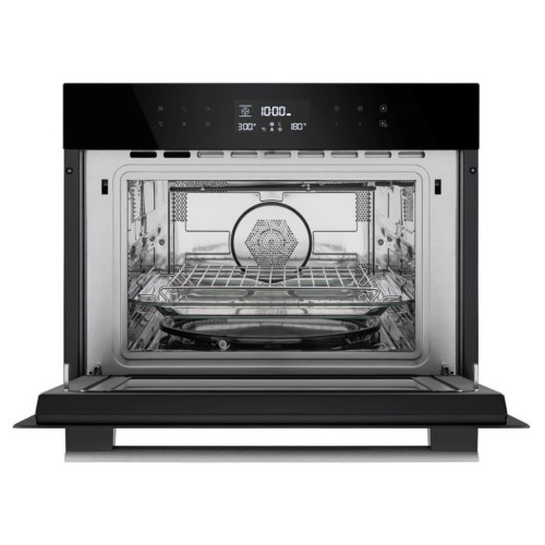 Описание 9 режимов, 13 автопрограмм, 3d конвекция, микроволны, полностью сенсорное управление, LED дисплей белого цвета, мультифункциональный таймер, съемная дверца с тройным стеклом, объем рабочей камеры 44 л, в комплекте круглый керамический поддон, круглый эмалированный поддон, стеклянный универсальный поддон, вращающийся поддон, решетка 2 шт, цвет черный