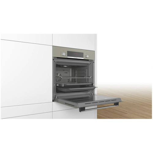 Духовой шкаф BOSCH подойдет для кухни в современном стиле и однозначно станет самой востребованной техникой в быту. Широкий функционал включает 8 программ, куда входят режим для пиццы, гриль и конвекция, стандартный нагрев и даже разморозка. Контролировать процесс готовки помогут таймер и подсветка внутренней камеры. Выставляйте нужный интервал и наблюдайте за блюдом, не открывая дверцу каждые несколько минут, сохраняя нужный температурный режим. Все данные о выбранных параметрах видны на дисплее. Для безопасности использования продуманы телескопические направляющие, которые надежно удерживают противень и решетку при перемещениях. Также предусмотрена защита от детей, включающая блокировку включения техники и открывания дверцы.