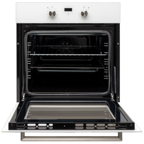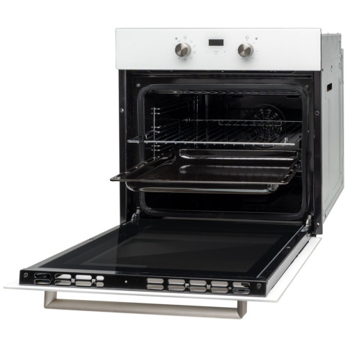 Электрический независимый духовой шкаф, Увеличенный Объем 69 л, Класс А, 9 режимов, Конвекция,Гриль, Цифровой программатор с сенсорным интерфейсом, Металлические переключатели, Материал панели - закаленное стекло, Легкоочищающаяся серая эмаль, Паровая очистка хромированные направляющие для противней, Съемная дверца с двойным стеклом лёгкой очистки Функция размораживания Комплектация: 1 глубокий противень с антипригарным покрытием, хромированная решётка Цвет прибора: белый, Цвет ручки и переключателей: нержавеющая сталь, ВхШхГ , мм: 595х595х575