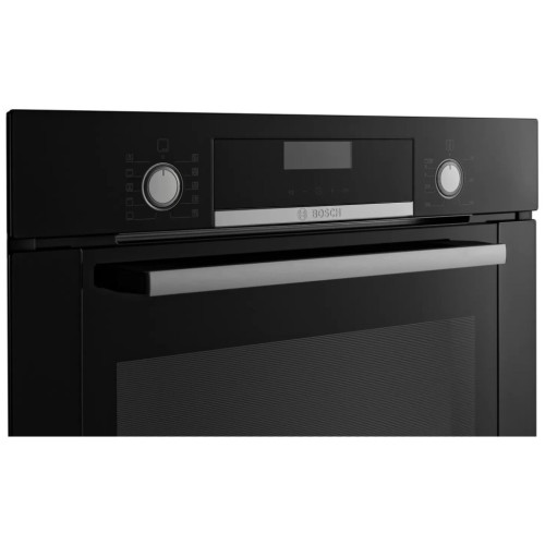 Встраиваемый электрический духовой шкаф Serie 6 HBG337YB0R от Bosch с технологией 3D горячий воздух и большим грилем. Благодаря равномерному распределению жара по всей камере, можно готовить на трех уровнях одновременно и быть уверенным, что все пропечется. 10 автоматических программ сделают приготовление проще: выберите программу, укажите вес продуктов и нажмите Старт. Дальше духовка все сделает сама. 7 режимов нагрева Поворотным переключателем можно выбрать температуру приготовления от 50 C° до 275 C°. Разные режимы нагрева подходят для приготовления пиццы, выпечки, жаркого, стейков, суфле и даже варенья. В духовке установлены: Горячий воздух плюс, Верхний/нижний жар, Гриль с конвекцией, Vario-гриль большой площади нагрева, Режим для пиццы, Нижний жар, Горячий воздух "нежный". Камера духовки внутри покрыта эмалью GranitEnamel, которая не дает жиру впитываться. Задняя стенка имеет уникальное пористое покрытие EcoClean, которое при нагреве превращает жир в воду.